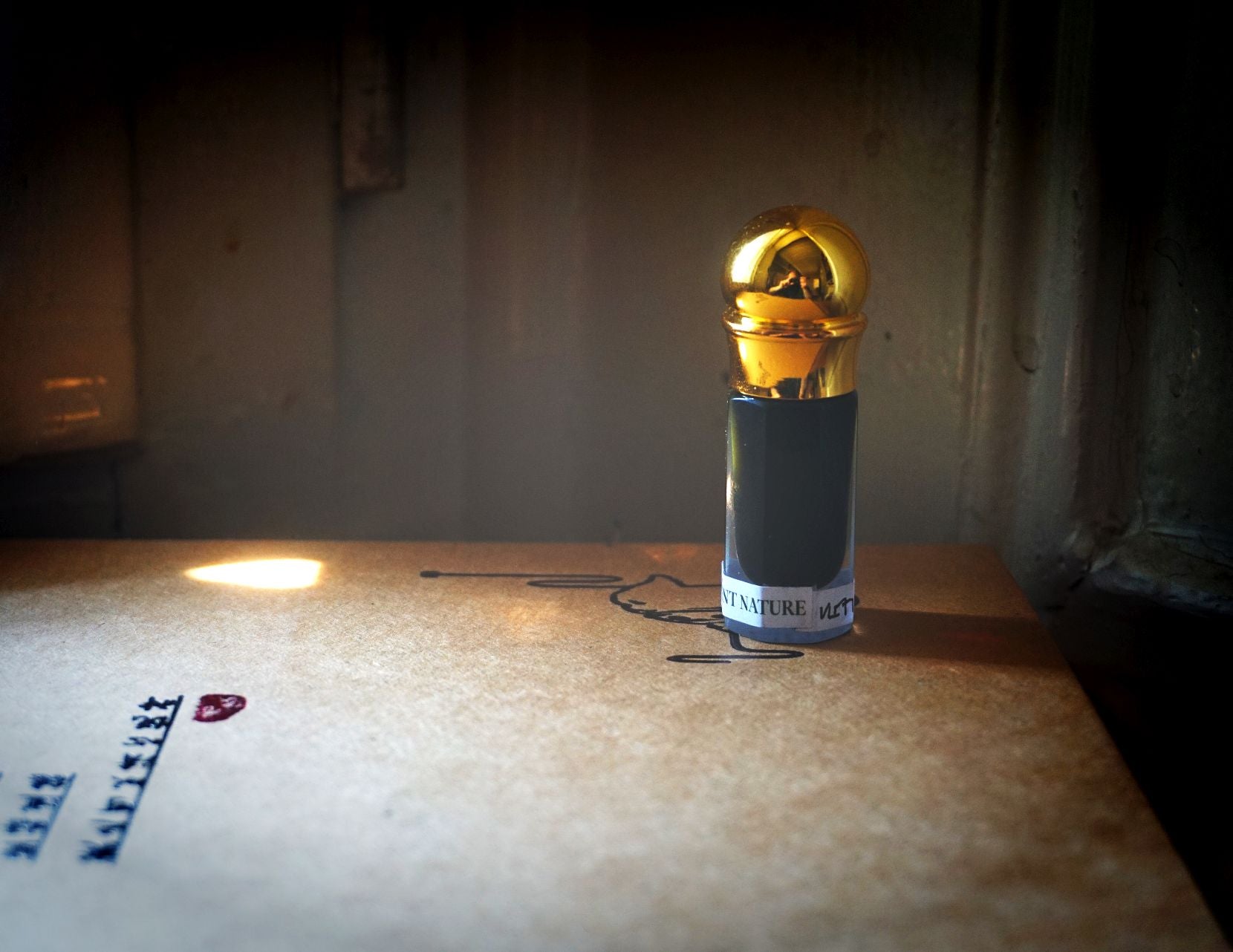 Since vetiver (khus in India) is consider a major coolant, fit for summer perfumes, and since the shrub is green when fresh, I have names this very special oil Black Emerald, fitting furthermore as the robe is dark green-brown
