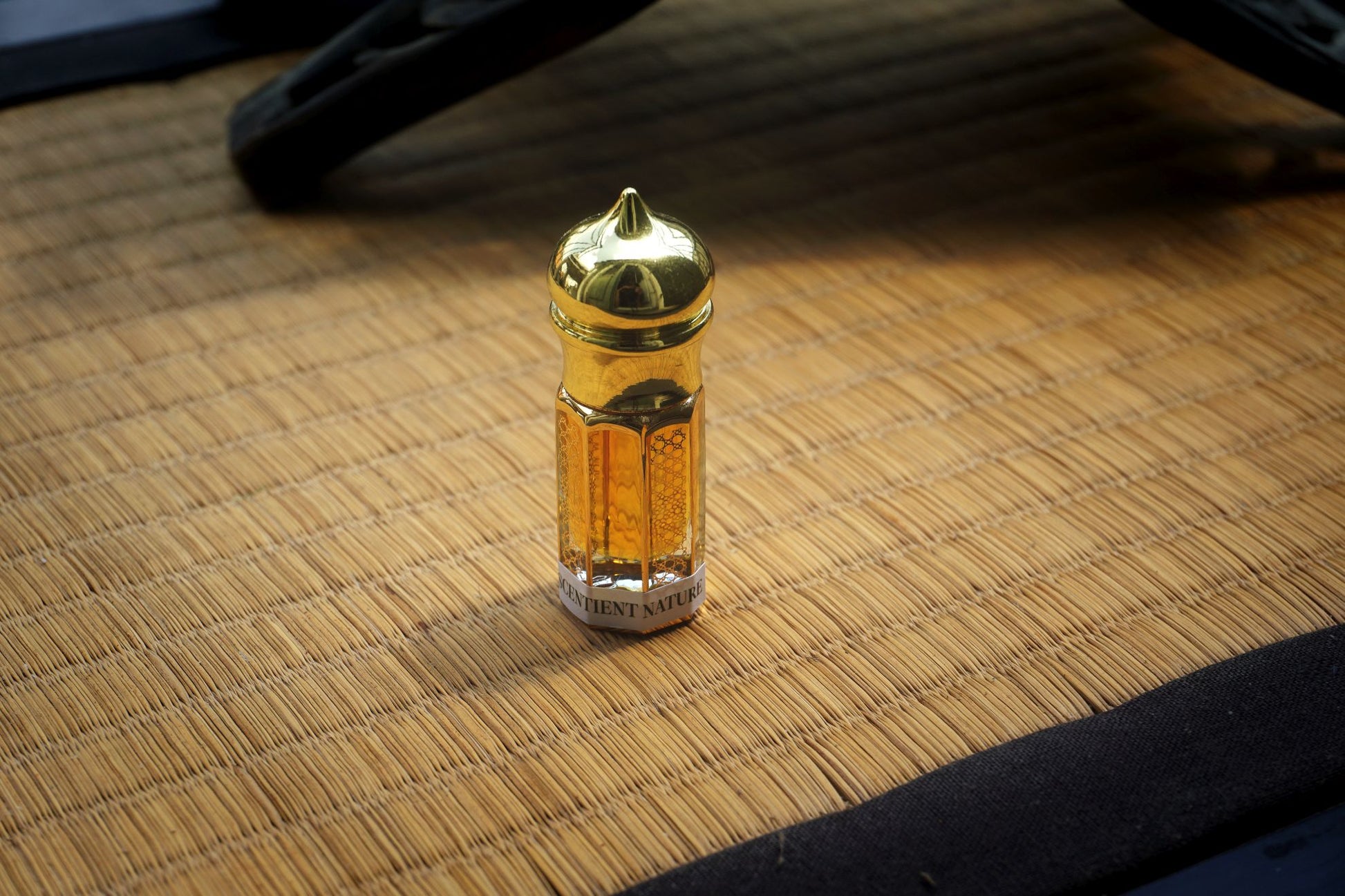 The robe is amber oud, Around the delicious Sandalwood core, one finds rich caramel and roasted ghee notes, with many interesting background nuances emerging form the terroir.