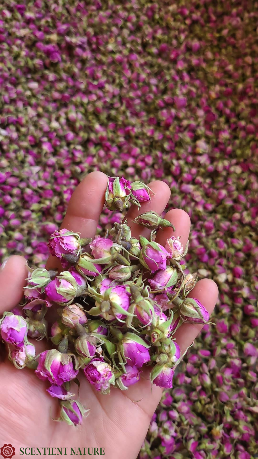 The rose orchard is cultivated entirely naturally and by hand. These rosebuds come form the same orchards same we use for producing our highet grade essential oil / rose otto.