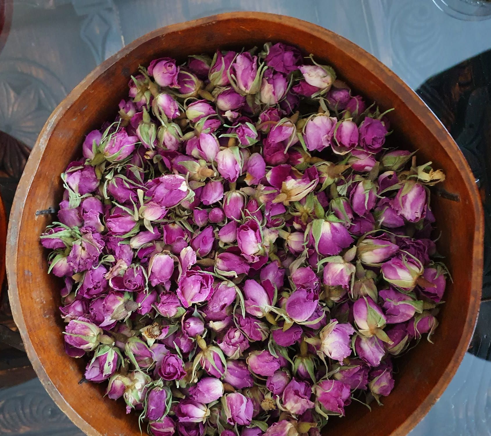 Dried rosebuds from our estate. 100% natural and organic. Deeply fragrant