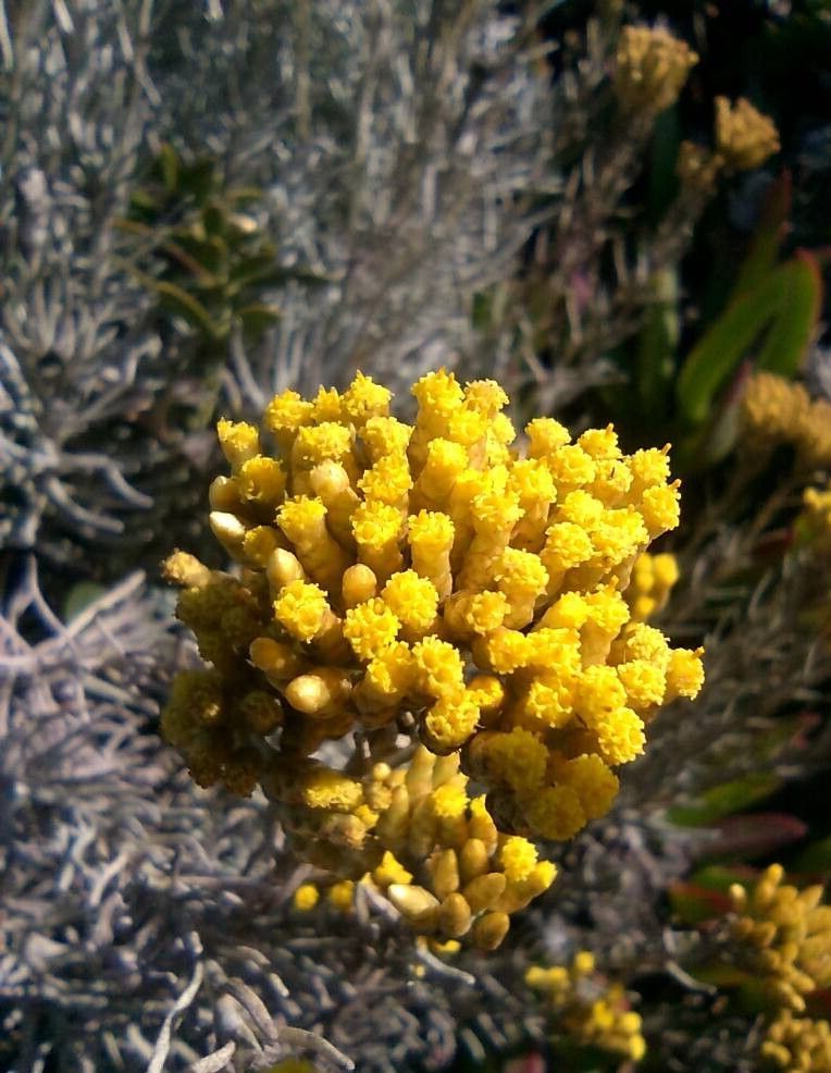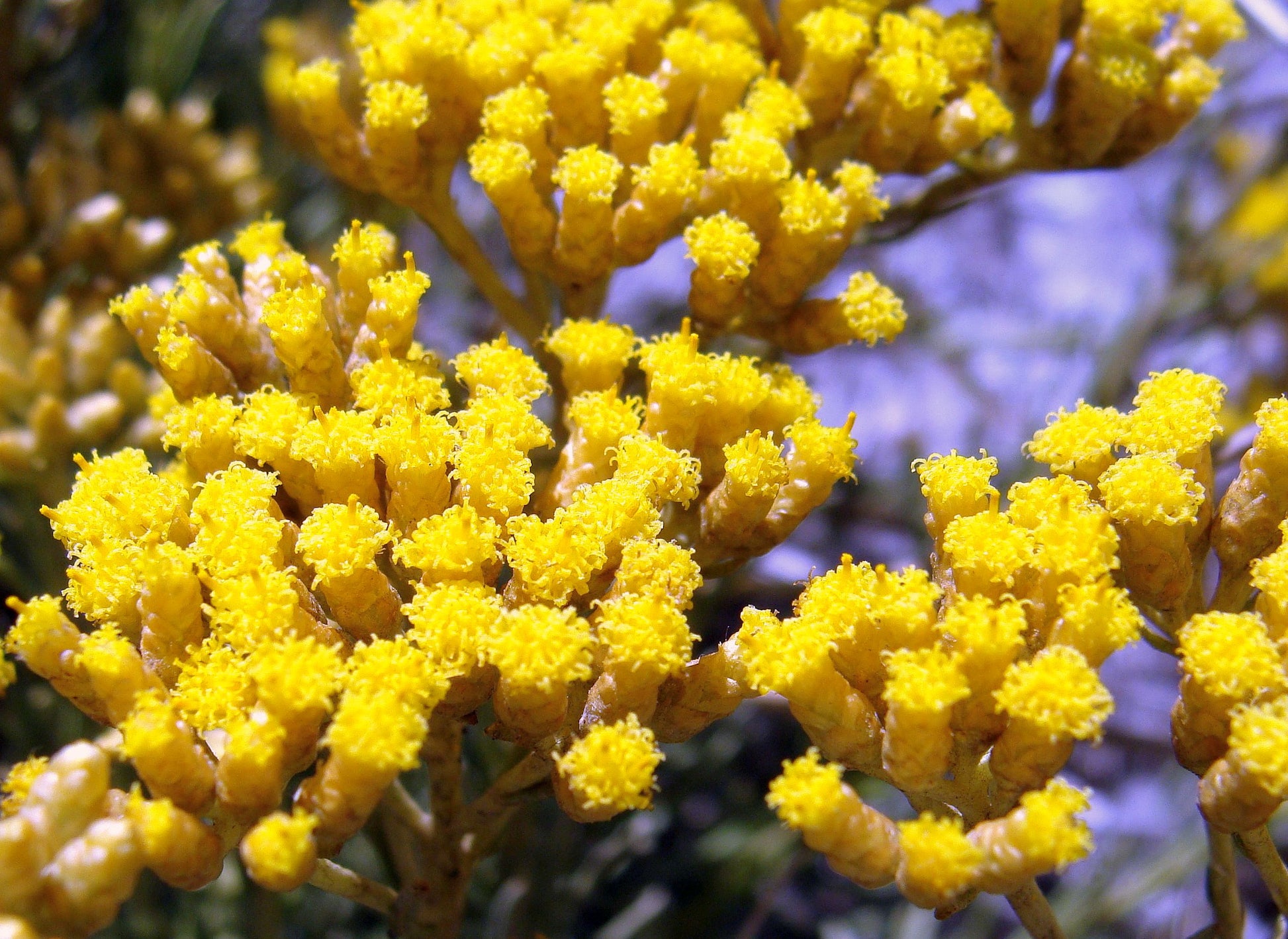 The botanical name of plant is known as "Helichrysum," derived from the Greek words "helios" (sun) and "chrysos" (gold), referring to the flower's golden color and association with the sun, as the plant is both a lover of the sun and of heat, which she both needs to thrive.