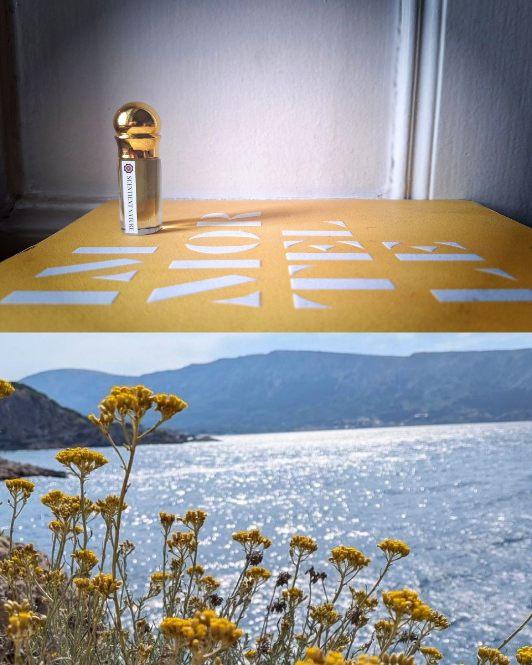 The flowers are made of papery bracts that retain their color and shape after the flower is dried. This unique characteristic is what inspired the name "L'Immortelle" (everlasting; In French, literally : the one who doesn't die). Beyond its physical properties, "L'Immortelle" also carries symbolic meaning, representing longevity, resilience, and even eternal beauty. In various traditions, around the Mediterranean, it has historically been associated with healing, protection, and good luck.