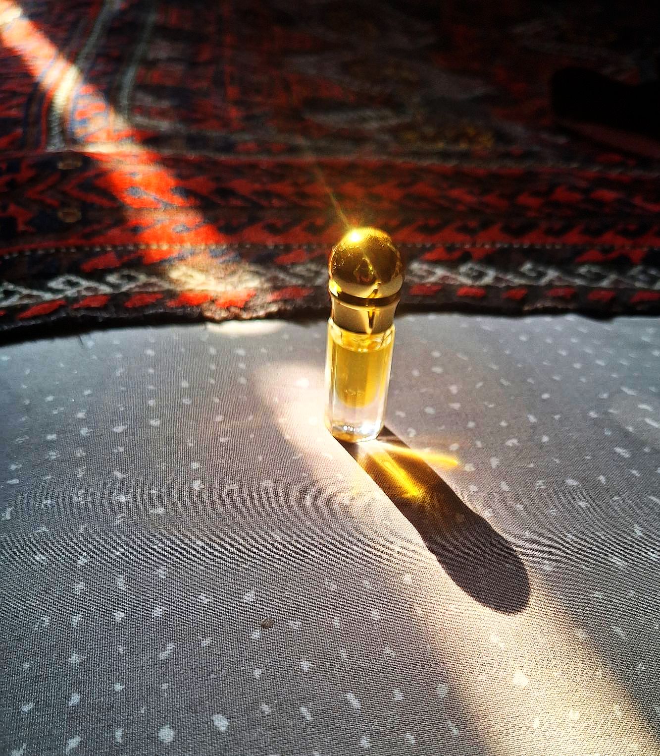 This engrossing oil has a strong opening, woody enwrapped with hints of honey, frankincense, fruit (ripe oriental persimmon) and light suede. An hour in, it becomes sweeter and a bit floral while a woody-suede core remains. The sweeter floral sandalwood experience take progressively centre stage over the next few hours, as the transition to a long and vibrant dry down initiates.
